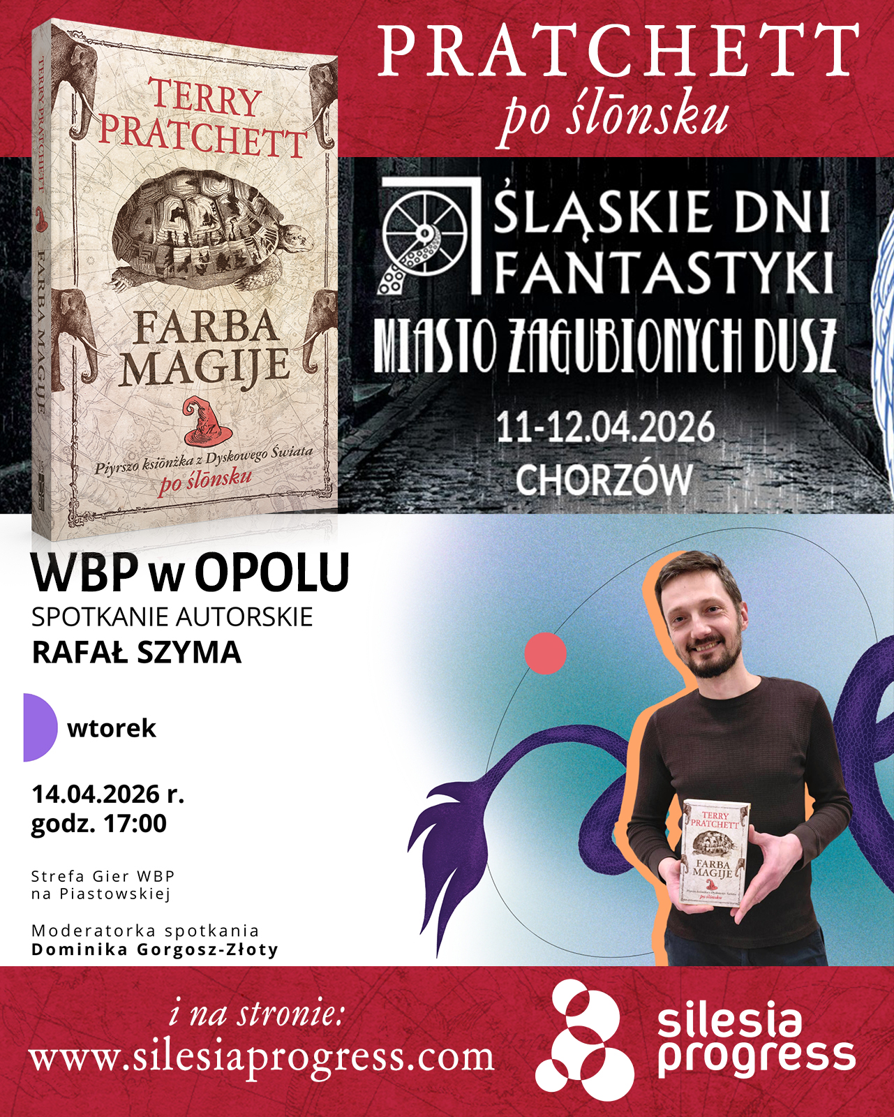 „Farba Magije”, ślōnski przekłod „The Colour of Magic” ôd Terry’ego Pratchetta, już je dostympno! Wydowca: Silesia Progress. Redakcyjo: Kamil Czaiński. Tumaczynie: nō ja, Rafał Szyma – jedne z mojich marzyń prawie sie społniyło.